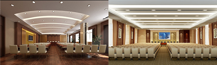 對于四方體的普通會議室聲學(xué)裝修,首先需考慮采用兩種類型吸音材料(多孔性吸音材料、結(jié)構(gòu)性/多共振體吸音材料),以達(dá)到全頻均衡吸音的效果,兩類材料可間隔性安裝。其次在材料布局上,可做到主席臺正對墻做強吸音處理,主席臺后墻及頂部適當(dāng)做吸音處理;兩側(cè)面墻做擴(kuò)散處理,頂部可適當(dāng)做擴(kuò)散處理。